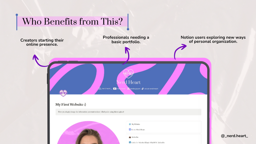 This template is perfect for those looking to design their first website on Notion. It includes everything you need to share your key information, important links, and introduce yourself to the world with a clean and professional design.
